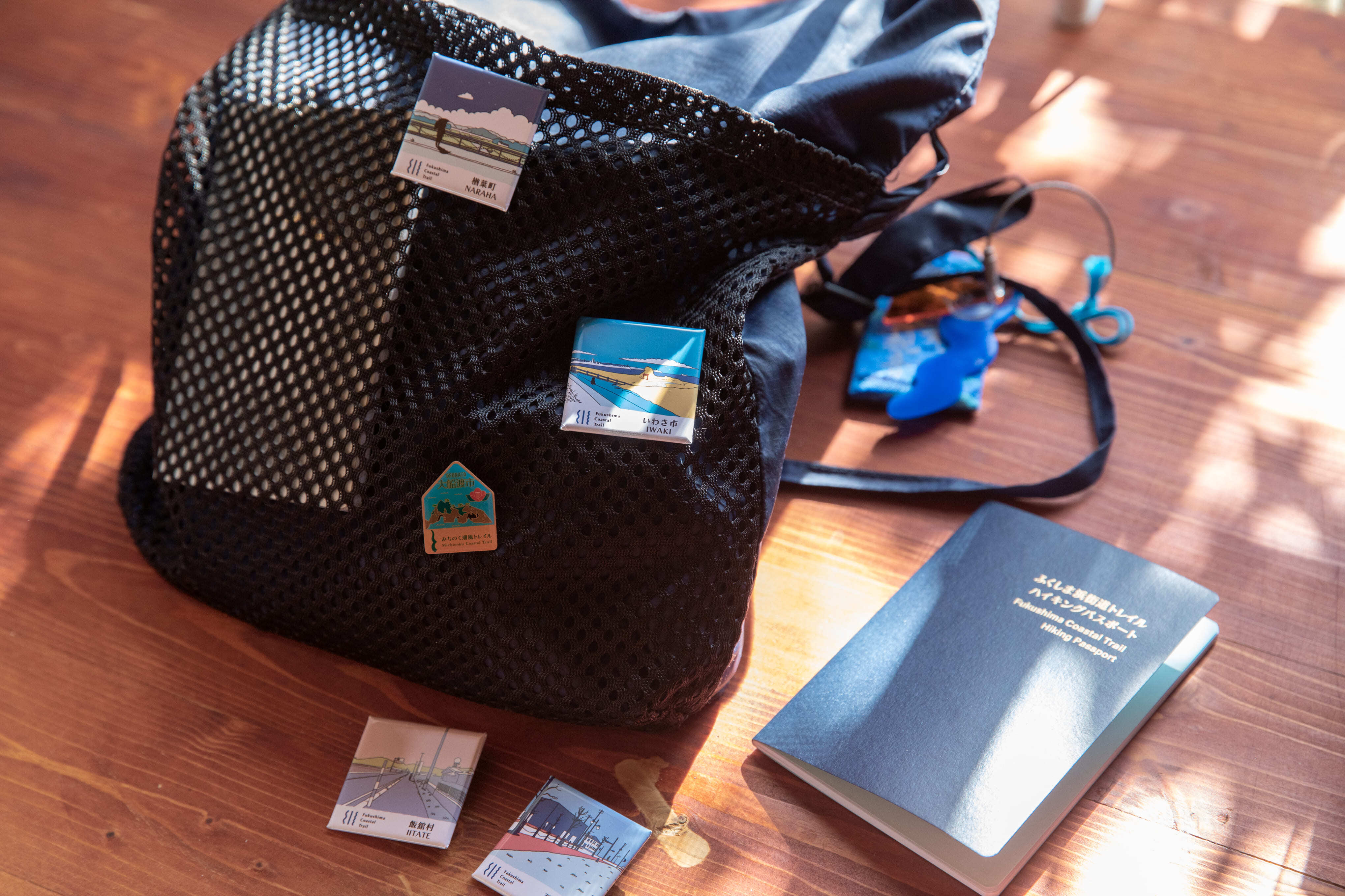 歩いてスタンプを押しながら、思い出の市町村の記念バッジを集めてみてください。トレイルを歩いた人が道中の風景を想起できるようなイラストが描かれています。